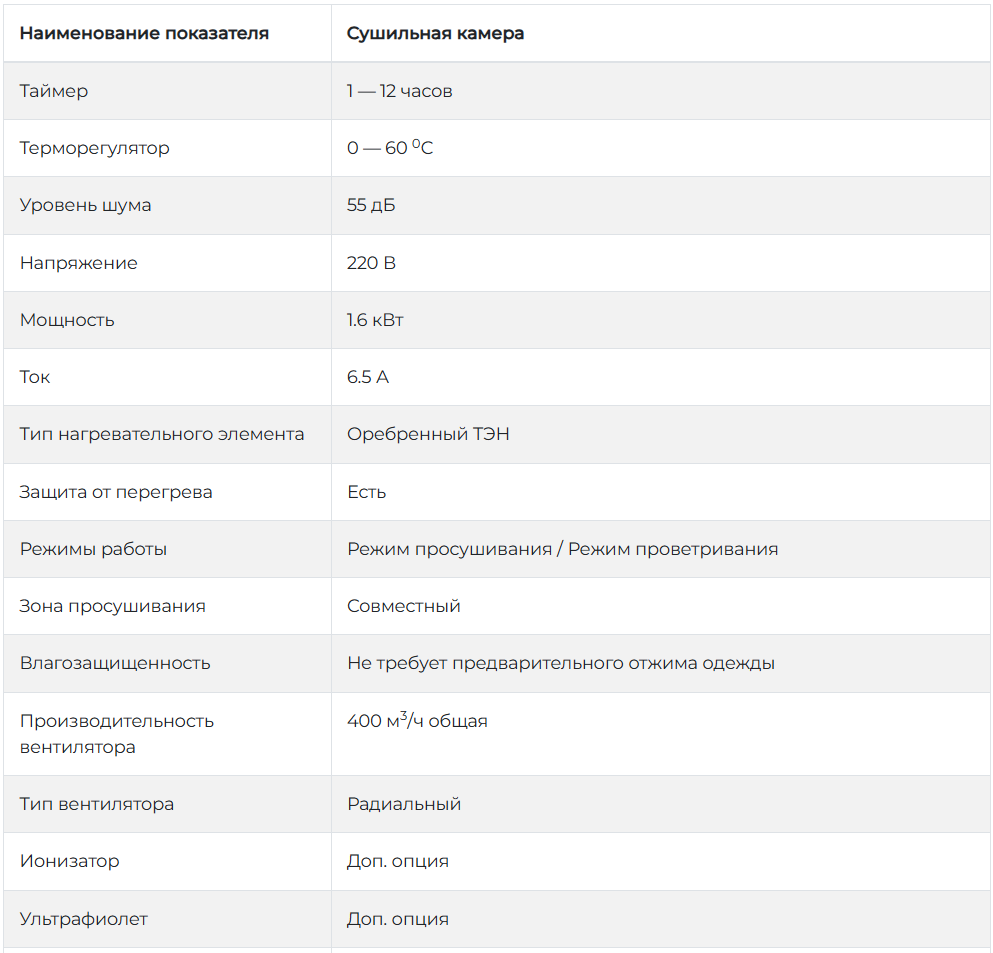 Данная модель шкафа сушильного предназначена для сушки четырёх комплектов (что включает в себя: 4 комплектов одежды, 4 пары обуви, 4 пары перчаток), шкаф надежно закрывается ключом.
